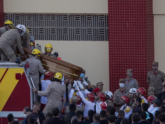 Maiara e Maraisa, amigas da cantora o trajeto ao lado do caixão; a dupla Henrique & Juliano também estava no carro do Corpo de Bombeiros.