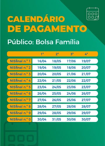 Para os beneficiários do Bolsa Família, o pagamento ocorre de forma distinta. Os inscritos podem sacar diretamente o dinheiro nos dez últimos dias úteis de cada mês, com base no dígito final do Número de Inscrição Social (NIS). O auxílio emergencial somente será pago quando o valor for superior ao benefício do programa social.