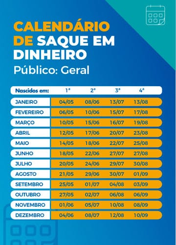 O calendário de pagamentos foi divulgado pelo governo na semana passada. Hoje começam a receber os trabalhadores informais e inscritos no Cadastro Único de Programas Sociais do Governo Federal (CadÚnico) nascidos em janeiro. O dinheiro será depositado nas contas poupança digitais e poderá ser movimentado pelo aplicativo Caixa Tem. Somente de duas a quatro semanas após o depósito, o dinheiro poderá ser sacado em espécie ou transferido para uma conta corrente.