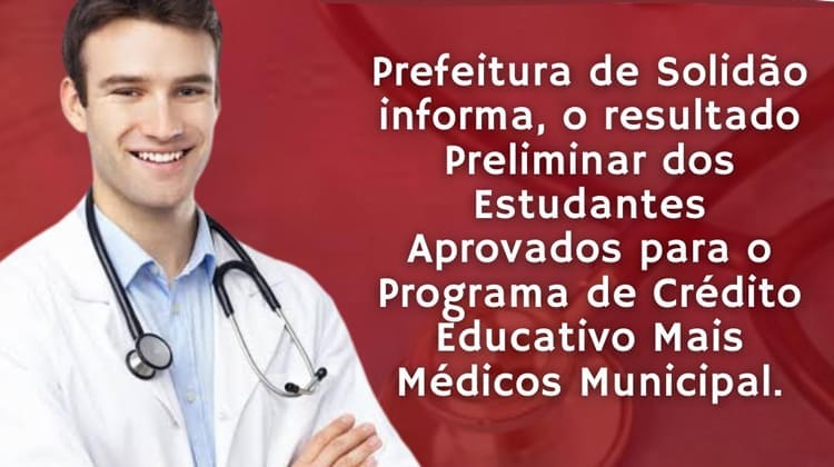 A prefeitura de Solidão divulgou na noite desta quarta-feira, 30 de junho, o resultado preliminar dos estudantes aprovados para o Programa de Crédito Educativo Mais Médicos Municipal.