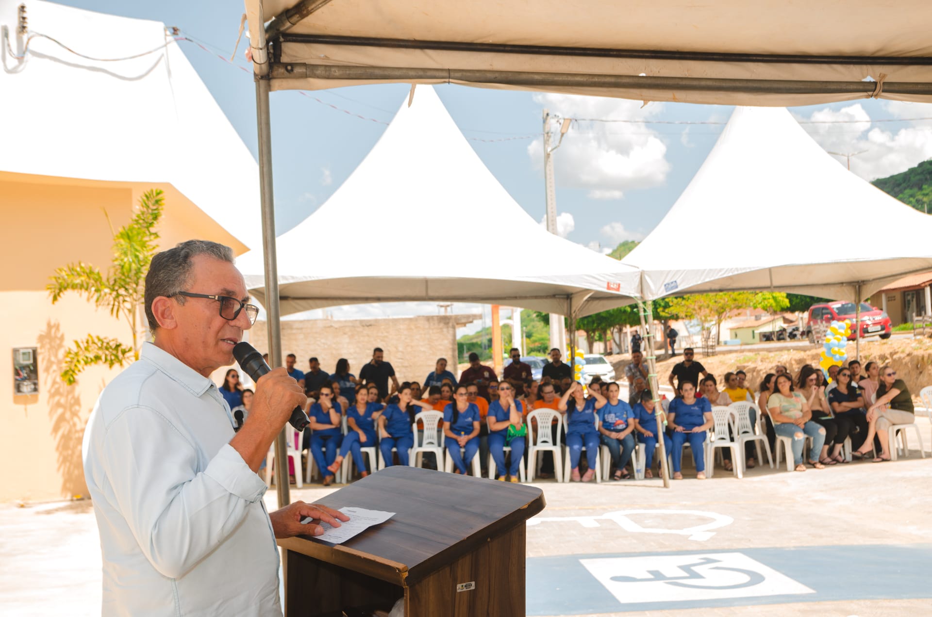 Djalma Alves, acompanhado de autoridades locais, funcionários da USF e da Secretária de Saúde Damiana Alves, entregou à população a nova Unidade Básica de Saúde, reforçando o compromisso da administração municipal com a melhoria dos serviços de saúde.