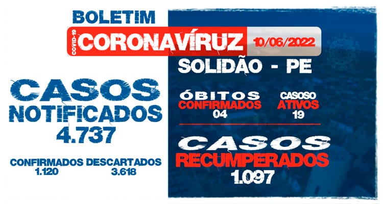 Segundo o último boletim, divulgado no dia de hoje sexta-feira (10 de junho de 2022), o município contabilizou 6 novos casos positivos para COVID-19, subindo de 13 casos ativos para 19.