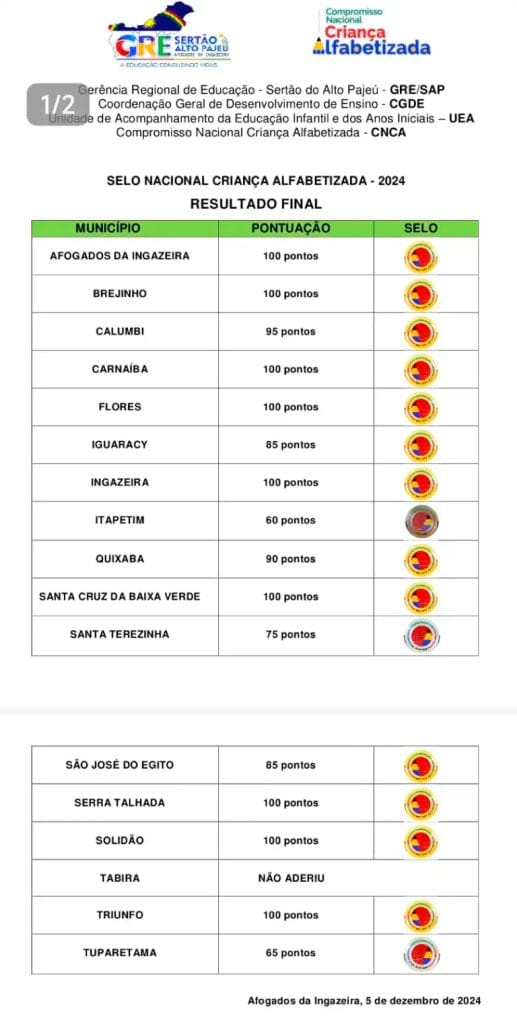 Esse compromisso nacional visa garantir a alfabetização de crianças na idade adequada, fortalecendo a educação pública municipal. O Selo é reconhecido como uma importante política pública para a melhoria da qualidade do ensino, mobilizando municípios em torno do desenvolvimento educacional. A ausência de Tabira no programa coloca a cidade em uma posição preocupante em relação aos avanços registrados nas cidades vizinhas.