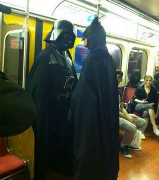 Imagina encontrar o Batman encarando o Darth Vader no metrô!