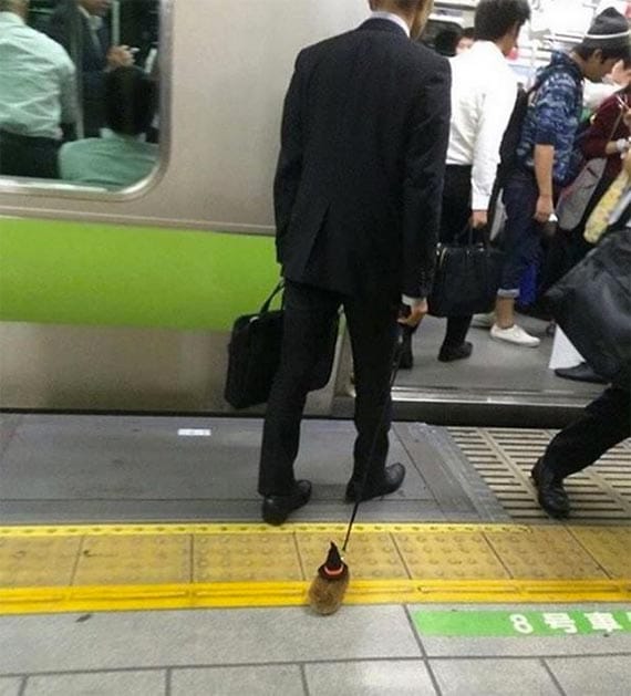 O que dizer dessa cena? Um homem levando seu hamster na coleira dentro do metrô.