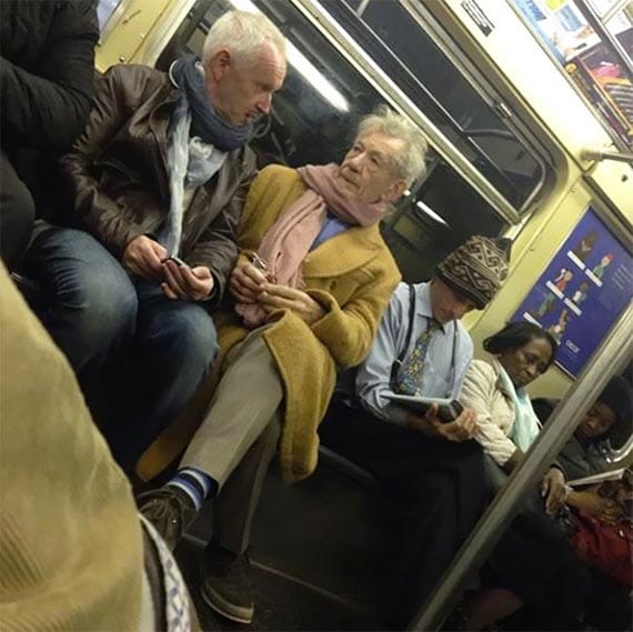 O que dizer de rodar de metrô na companhia de Gandalf (The Hobbit e Senhor dos Anéis) e Magneto (X-men)? Todos são personagens interpretados pelo ator britânico Ian Murray McKellen.